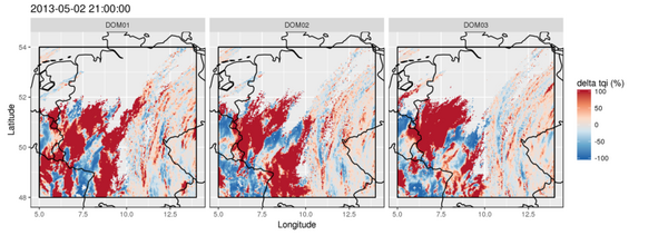 Work package 7 in particular works on the evaluation of the ICON-LES model, we compare the control run and perturbed simulations with observations. It uses a full-domain region (Germany) and performs comparison between the ICON cloud vertical structure (lowest cloud base and higher cloud top) and the retrievals of ground-based ceilometers (DWD network) which yield the lowest cloud base in combination with satellite cloud tops derived from SEVIRI satellite observations. With the ICON-LEM meteogram output available for 39 supersites, it will be possible to derive other products from the simulated variables and analyze these in more detail.