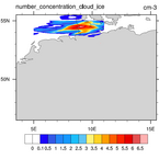 Modelling of mixed-phase clouds and cloud ice in general comprises many significant challenges. One of these is related to how the models distinguish between different cloud ice categories, such as ice particles, snow, graupel and hail. This task is difficult for traditional microphysical parameterizations that are currently used in the ICON_LEM. Therefore, in the beginning of this work package, a revised microphysical scheme is implemented into the model. The new scheme aims to alleviate the above mentioned challenges by reducing the number of ice categories, but introducing new prognostic equations, which allow a more flexible representation of the ice particle properties.